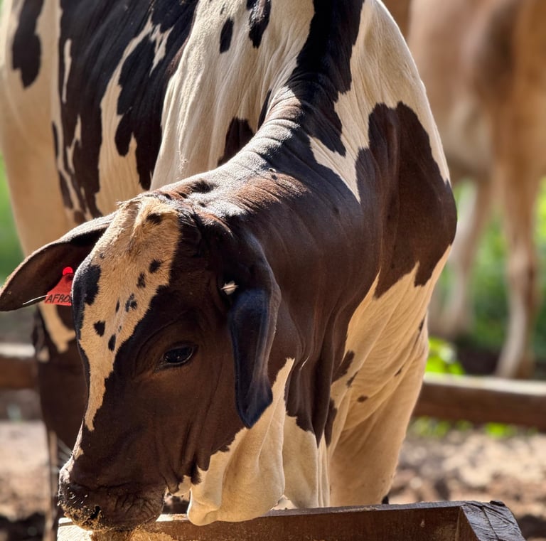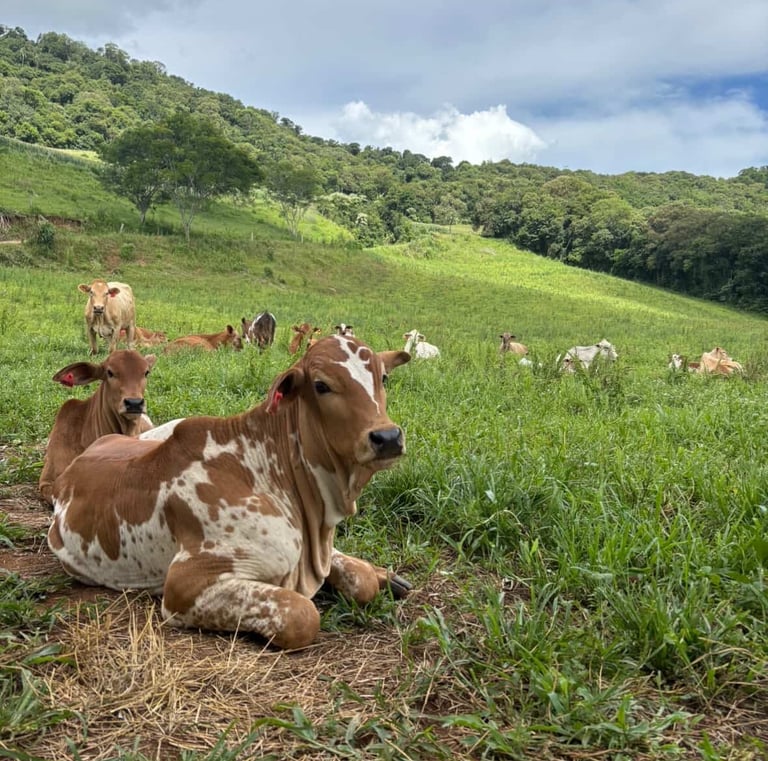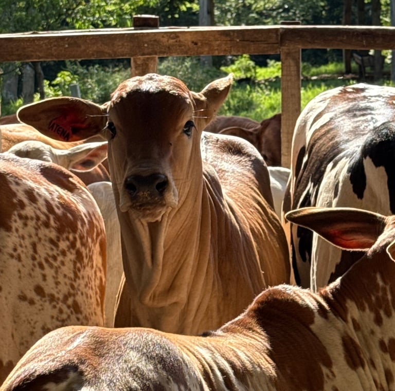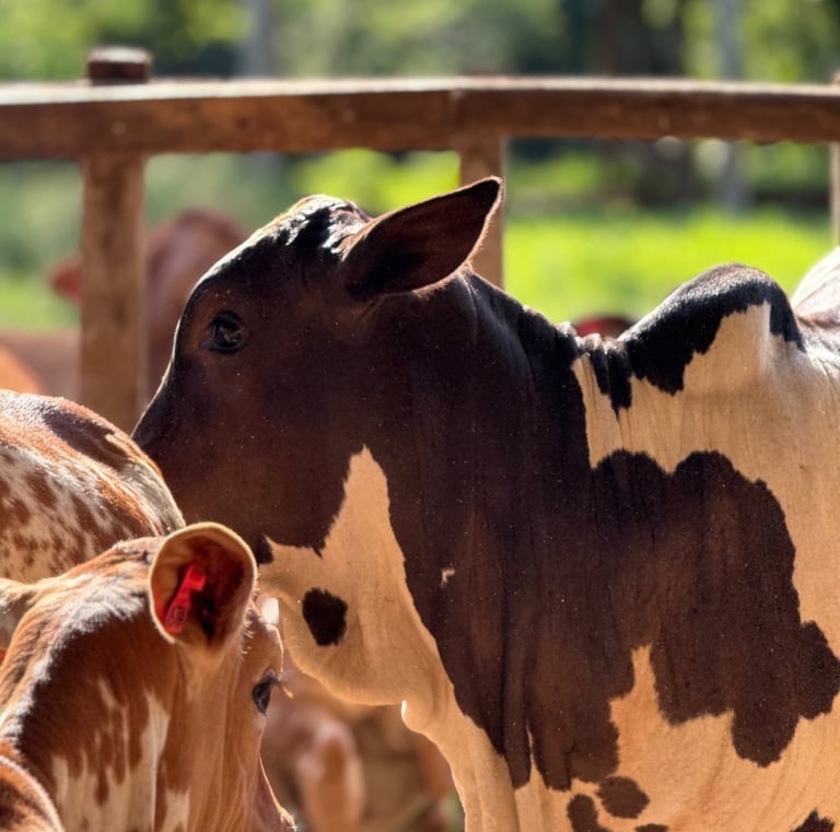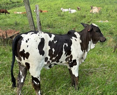 Cada animal é selecionado para garantir a excelência e a força da raça Nelore Pintado em nosso rebanho.