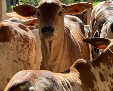 Criamos com cuidado a genética do Nelore Pintado, preservando tradição e qualidade na nossa fazenda.